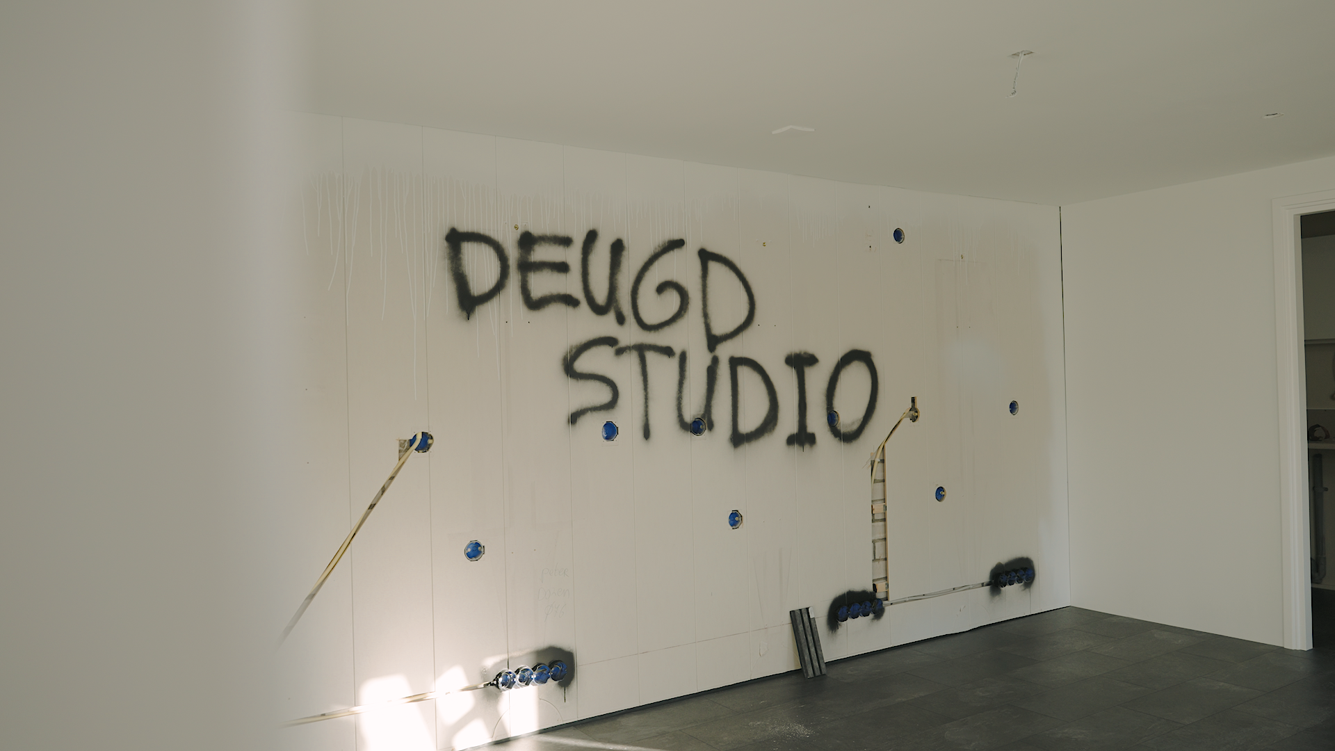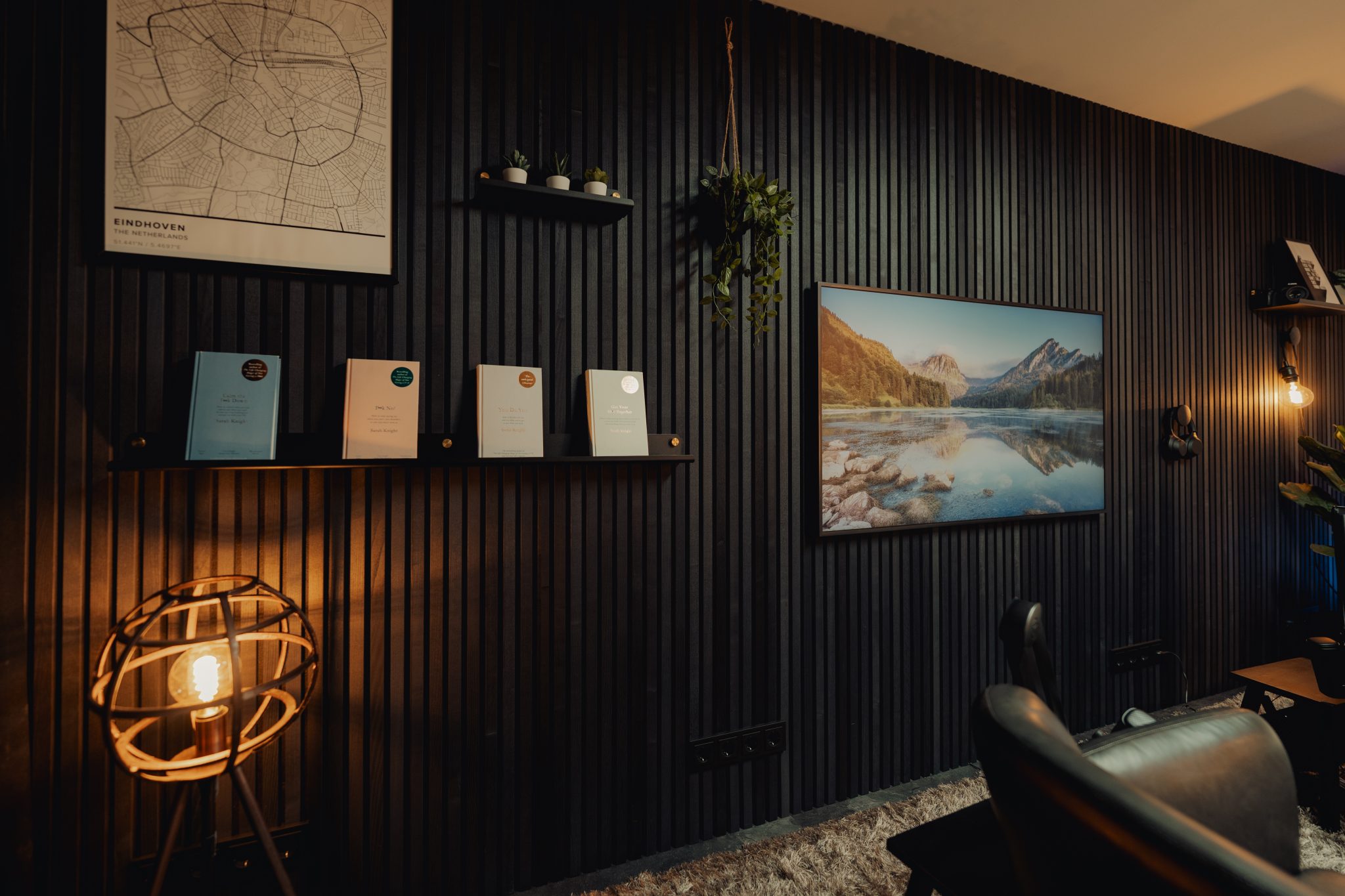 This home studio is both a workspace and a social spot — and this is where dark WoodUpp panels do wonders.
