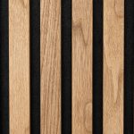 Real Wood Veneer – Each slat features a genuine wood veneer on the front, with either a brown or black MDF core visible on the sides.