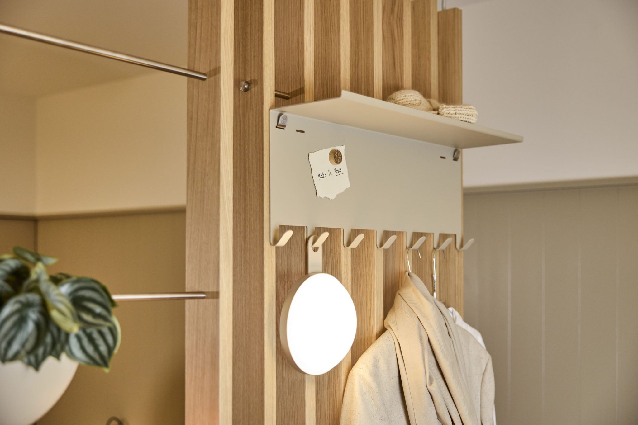 The coat rack turns BM1 into a useful everyday zone. It keeps items off chairs and floors and makes it easy to hang things up as soon as you walk in.